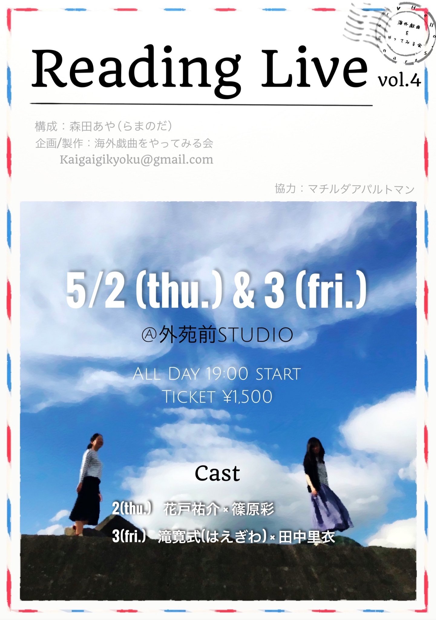 海外戯曲をやってみる会、最初のリーディングは、フランスのラブコメを読みました!